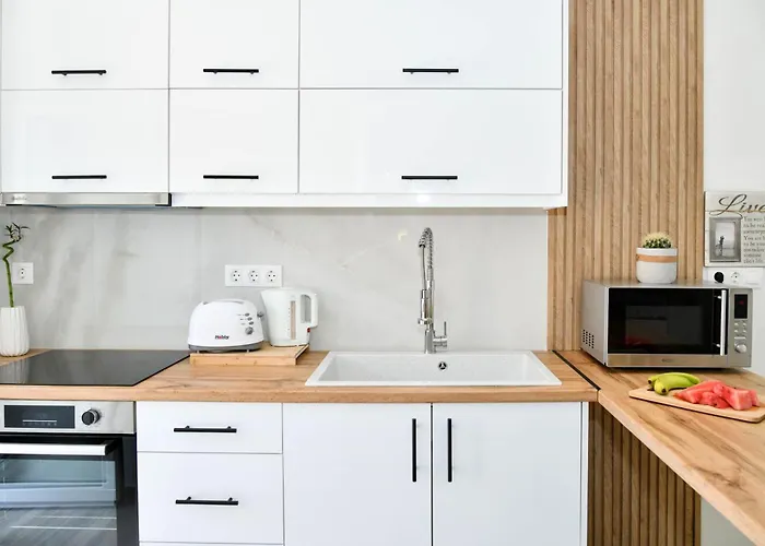 Среди кухонных удобств можно выделить электрочайник, холодильник и кухонную утварь. Всего в 7 минутах ходьбы гости найдут ресторан Big Max Diner, где им подадут блюда греческой кухни. Гости также могут сесть на автобус на автобусной остановке Фонтан Кавос, расположенной всего в 10 минутах ходьбы, чтобы посетить соседние районы Кавос. На территории можно взять напрокат велосипеды или провести время наслаждаясь пинг-понгом и дартсом.